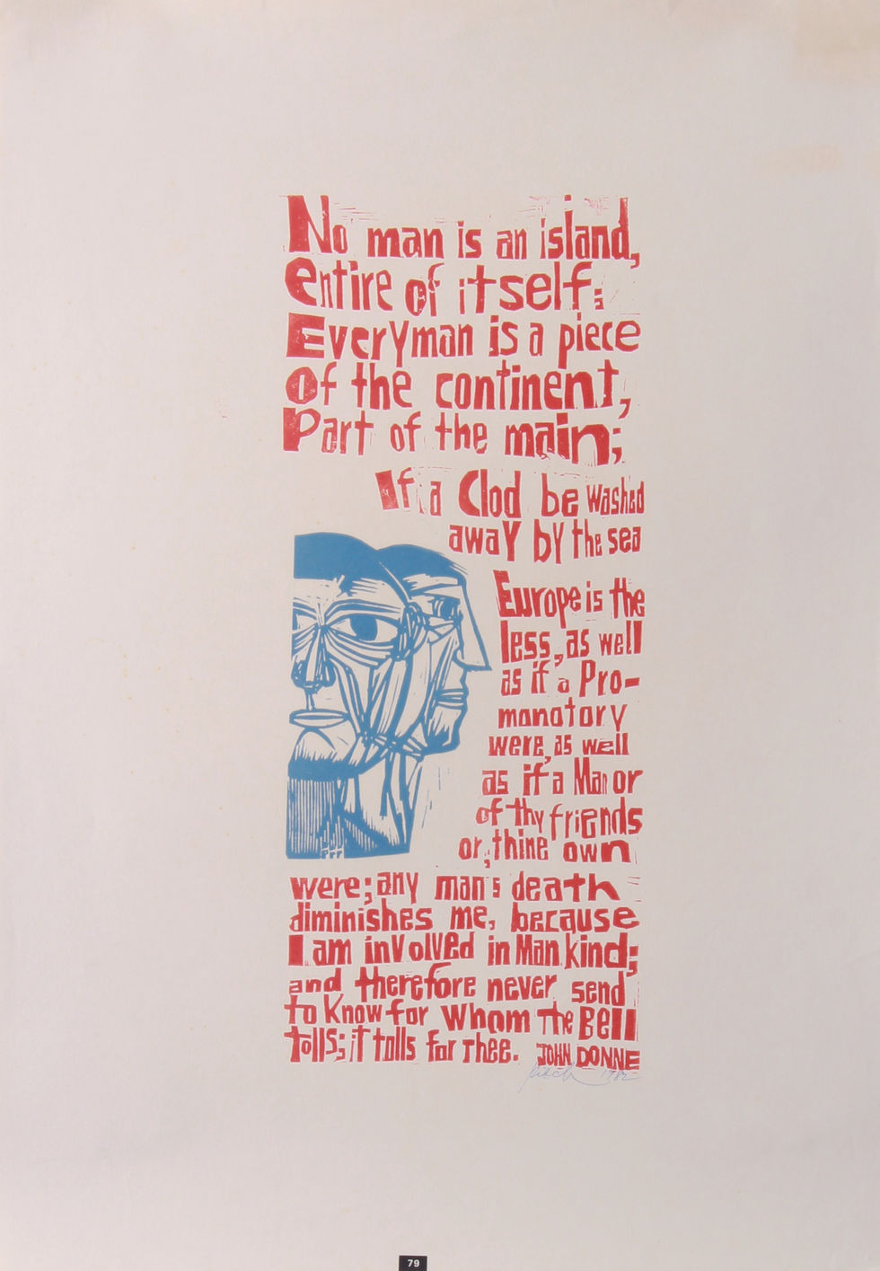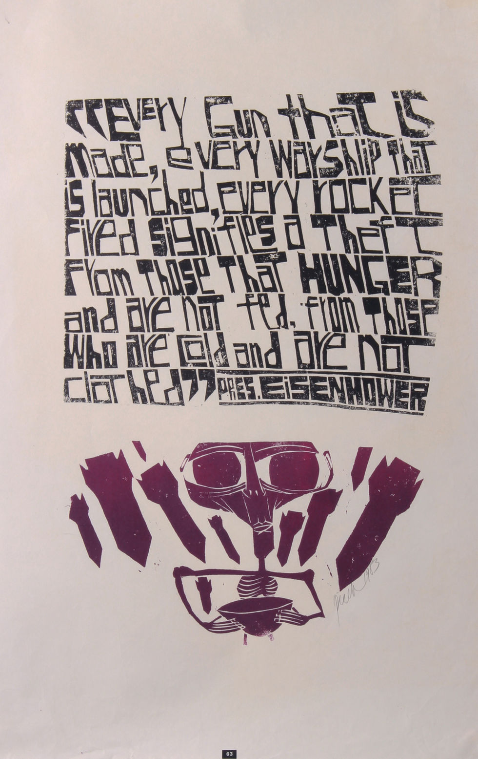 Piech knew that critiques, warnings, and reminders alone do not lead to meaningful change; thus, many of his prints act as a call to arms. Piech often evokes the words of leaders of human rights, justice, and peace to inspire action.